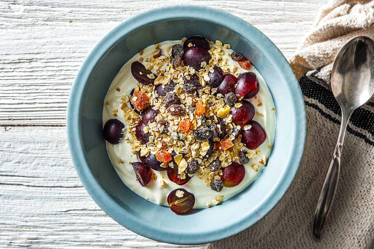 Met blauwe druiven en muesli