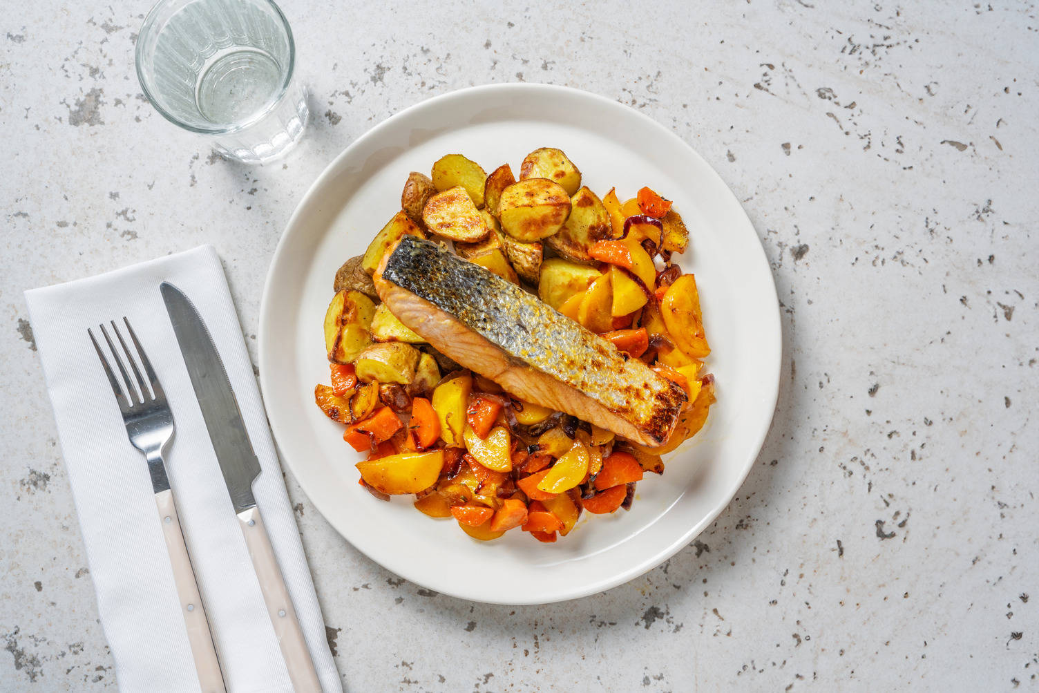 - Voeg beide toe aan een bakplaat met bakpapier en besprenkel met een scheutje olijfolie. Breng op smaak met peper en zout.