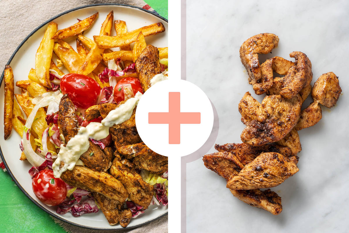 De originele kapsalon eet je vaak met shoarma of döner, maar wij hebben gekozen voor kipgyros. Het vlees hebben we alvast voor je gekruid met onder andere een mix van paprikapoeder, oregano, komijn, kardemom en knoflook. Deze twist op de kapsalon is wat minder vet dan het origineel. In plaats van de knoflooksaus maak je bijvoorbeeld zelf een dressing met karnemelk. Heb je dit niet in huis? Met onze tip maak je alsnog een lekkere dressing.