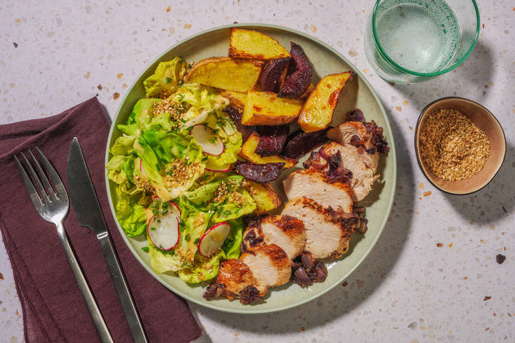• Serveer de kip op de borden en verdeel de gebakken ui erover.