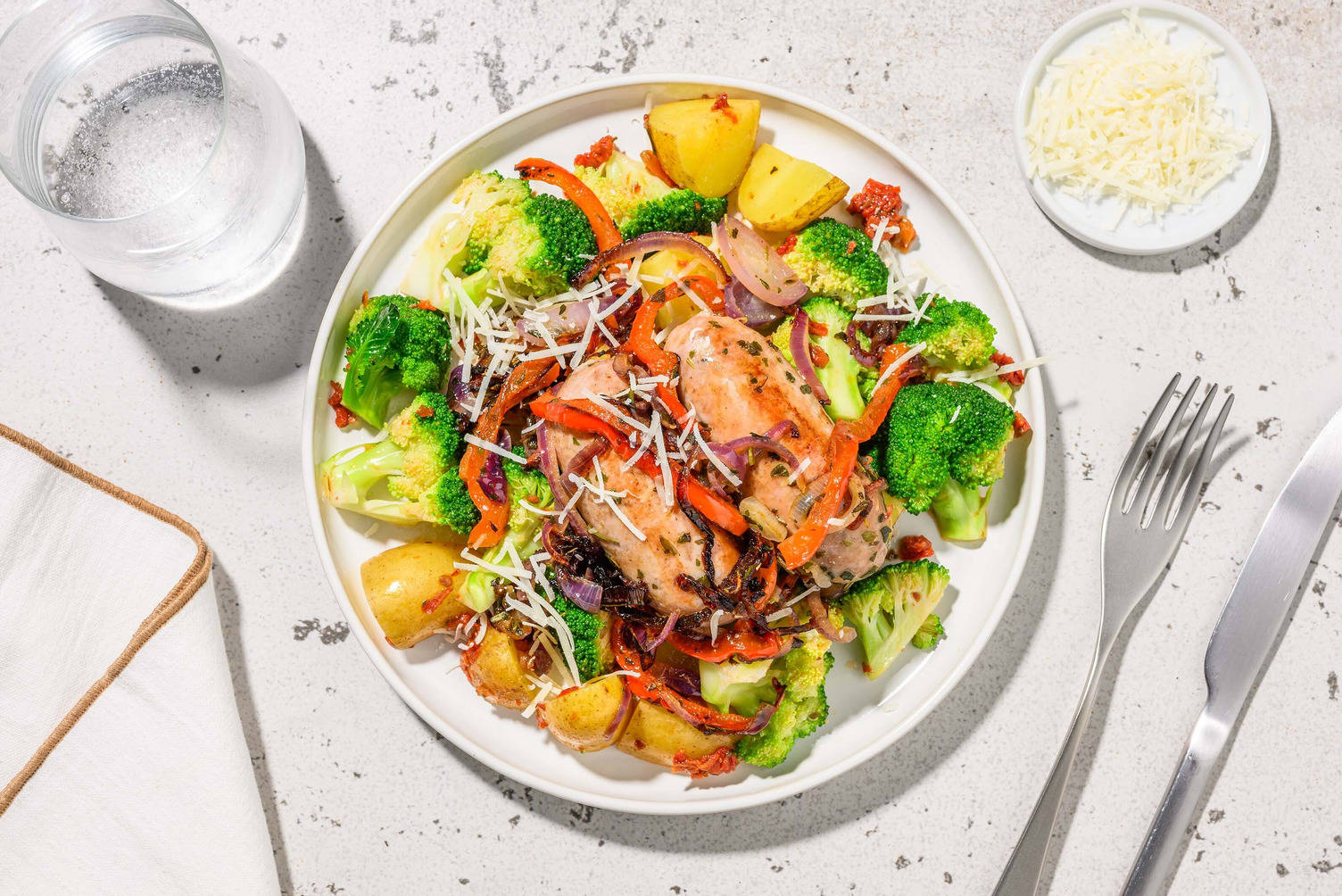 Prik de kipsaucijsjes op 3 plekken in met een mesje. Verhit de overige olijfolie in een koekenpan met deksel en bak de kipsaucijsjes in 2 minuten op middelhoog vuur rondom bruin. Dek vervolgens de pan af en bak 8 minuten op middelmatig vuur. Keer regelmatig om.
