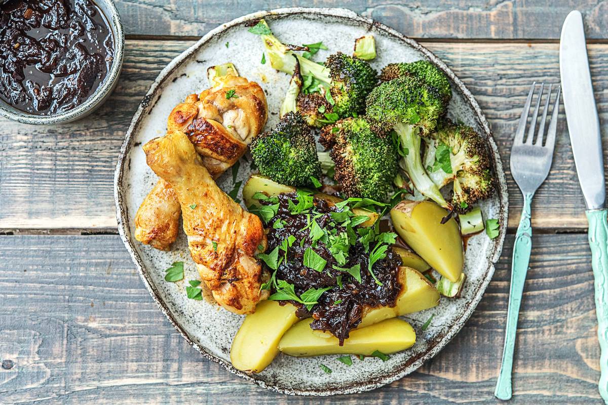 Cuit lentement, un ingrédient simple tel que l’oignon développe une saveur très intense. Dans cette recette, le chutney accompagne très bien le poulet ainsi que les pommes de terre cuites à l’eau. De plus, vous allez rôtir les brocolis afin de leur donner plus de saveur et de croquant.