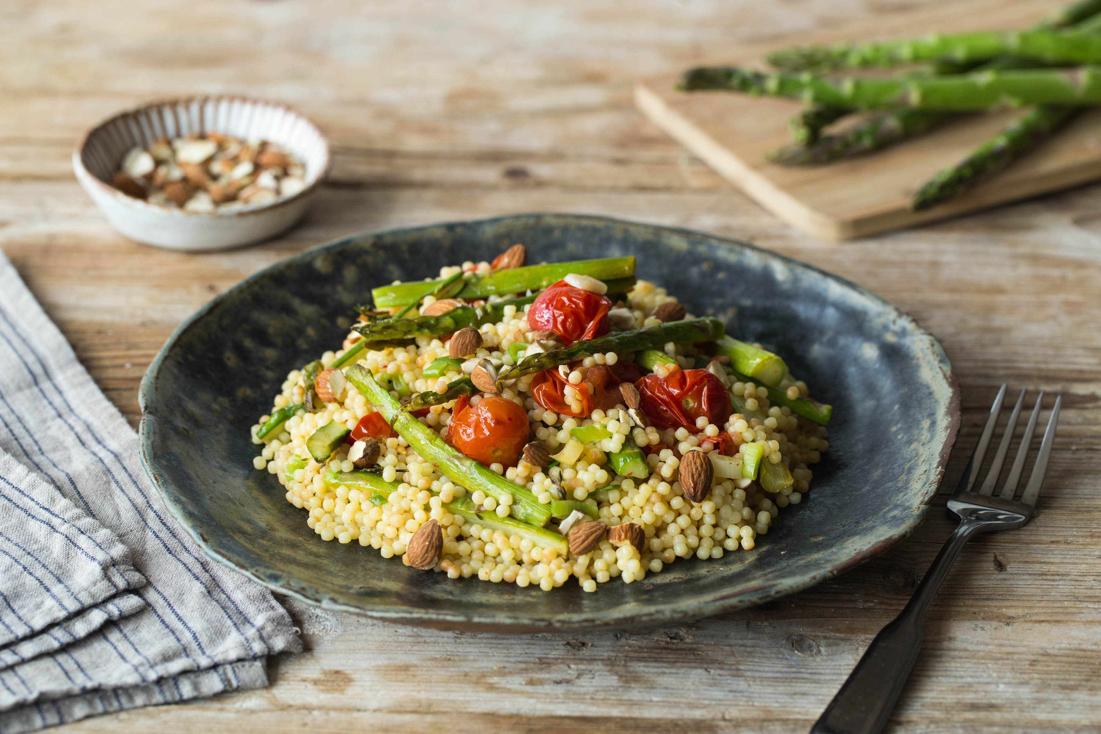 Garnir avec le halloumi, l’échalote et le reste de tomates cerises.