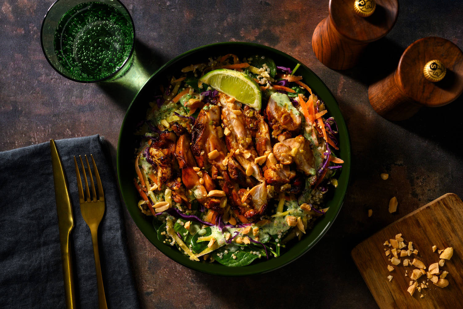 Snijd of knip ondertussen de verse bieslook fijn. Meng in een kleine kom de volle yoghurt, de mosterd en de bieslook. Breng op smaak met peper en zout.