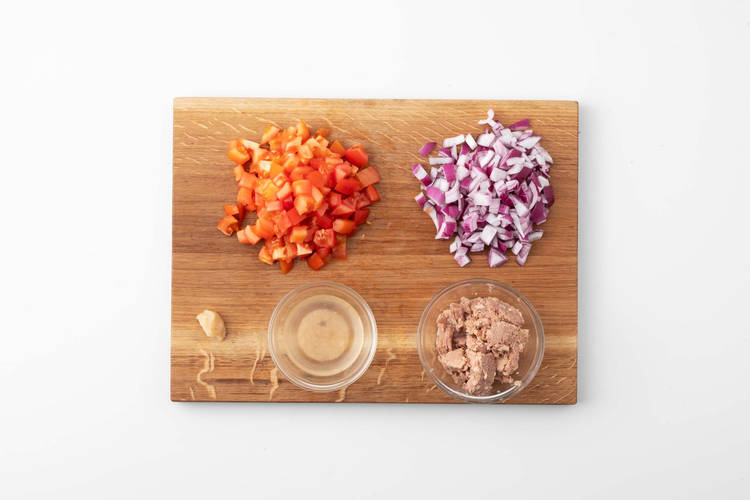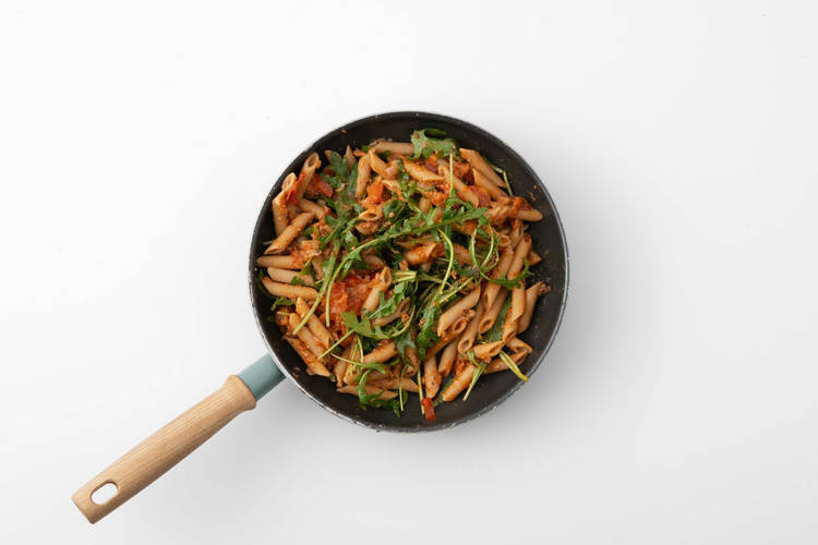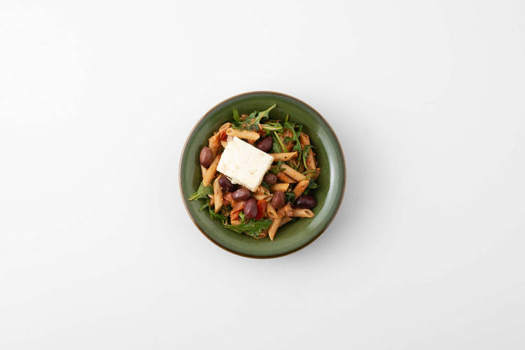 Mediterraanse stijl pasta met tonijn, feta en rucola