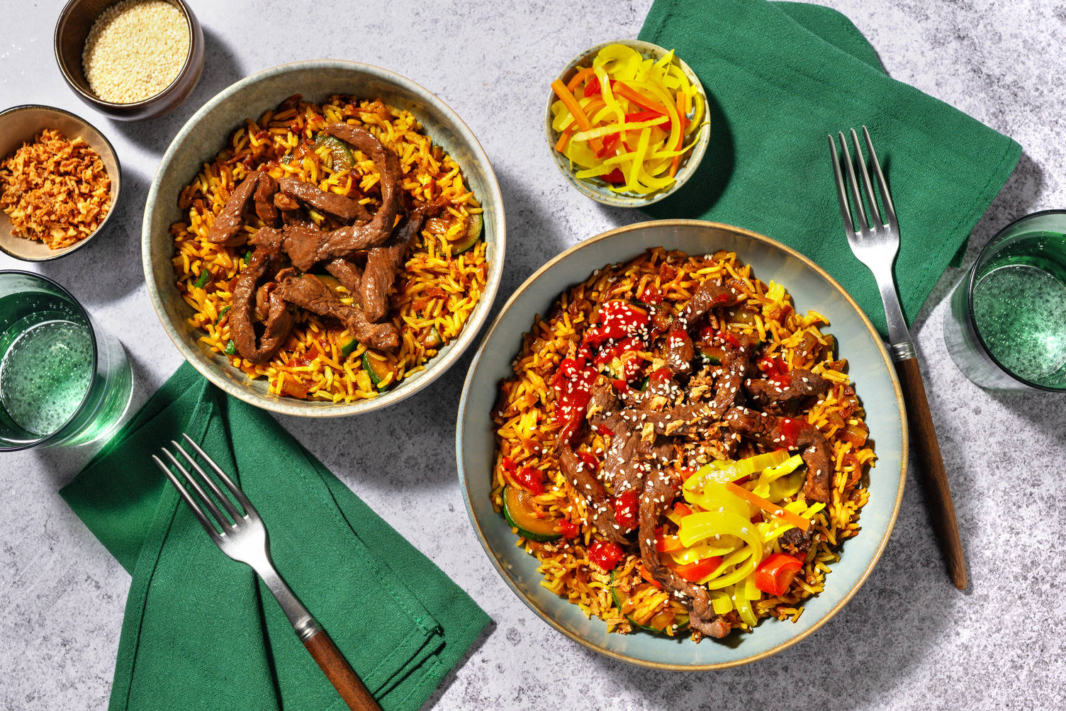 - Verdeel de nasi over diepe borden.