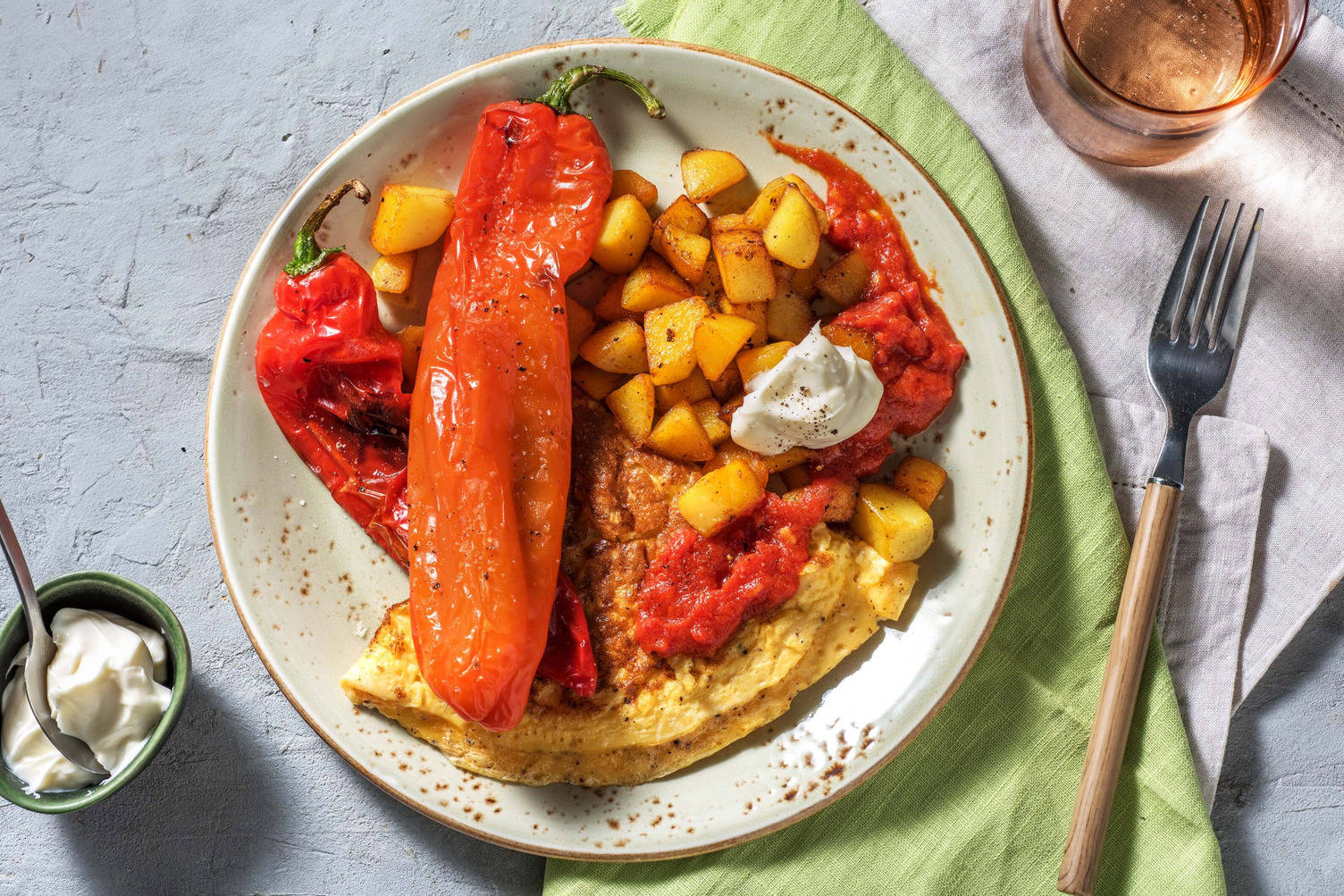 Ontdek deze patatas bravas met geitenkaasomelet recepten en laat je inspireren door HelloFreshPatatas bravas met geitenkaasomelet recepten