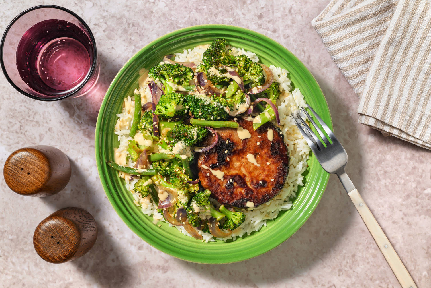 Pendant ce temps, faites chauffer le beurre dans le wok ou la sauteuse et faites-y revenir l’oignon rouge et le poivron 10 minutes à feu doux. Ajoutez le vinaigre balsamique blanc après 1 minute. Salez et poivrez.